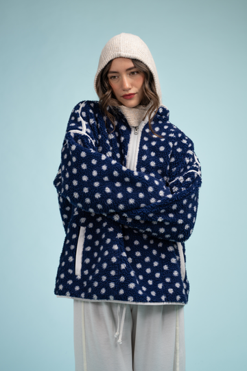 Our newest mini collection blends cozy comfort with timeless style. Fan-favorite silhouettes are back, plus a brand-new must-have you’re going to love. The Montana Vest and Teton Jacket return in a fresh yet classic dot pattern, while the Wyoming Half Zip (pictured) makes its debut as your new winter statement staple. Designed with a full-length fit, three zip pockets for all your cold-weather essentials, and a perfectly oversized silhouette, it’s equal parts functional and flattering.