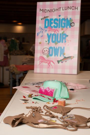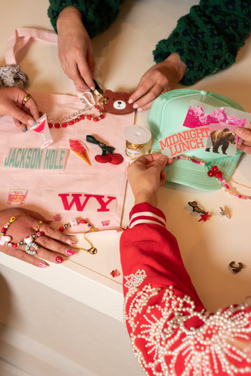 Pick your base product (trucker hat, tote bag, apparel + more!), arrange your decals and charms, and heat press your way to something no one else has.