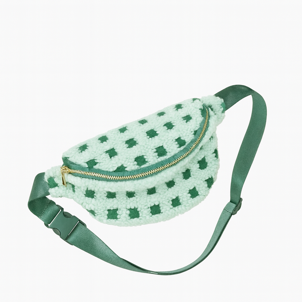 Adjustable belt bag in our signature red sherpa gingham fabric.