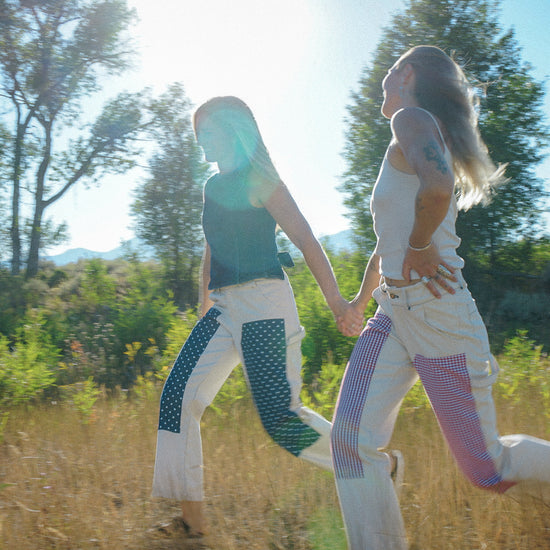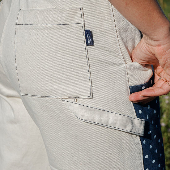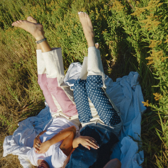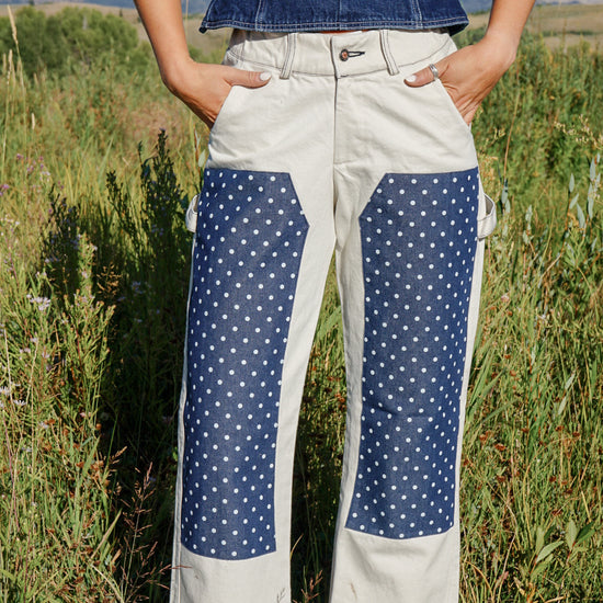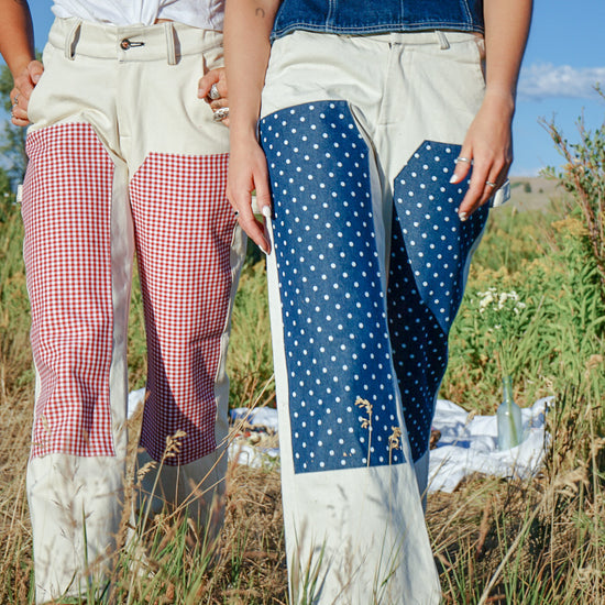 The Panel Pant is made with 100% cotton twill and is handmade in the USA, offering a perfectly structured, yet relaxed fit. It is mid-rise with an elastic waistband for added comfort, featuring a contrast panels in two color ways (Red Gingham + Navy Dot). The pant leg has a slight flare, making these pants the perfect blend between style and utility. We consider The Panel Pant to be the ultimate fall transition piece.