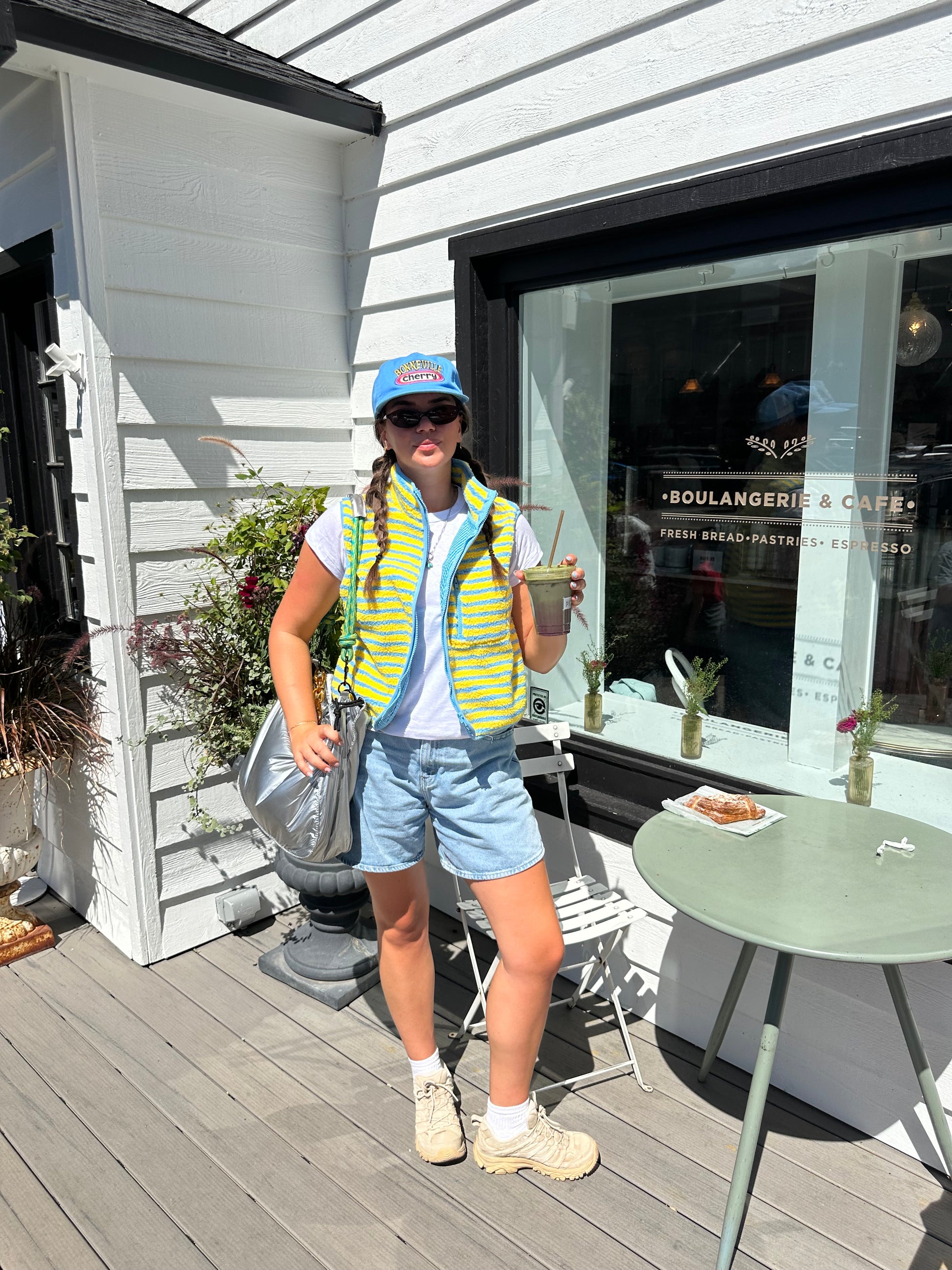The Stripe Vest is our most popular style, refreshed and improved. With an adorable gingham lining and a playful pattern, it’s designed to be the ultimate standout staple. Its boxy fit ensures comfort, while its versatile style lets you dress it up or down effortlessly - from mountain tops to hot girl city walks.
