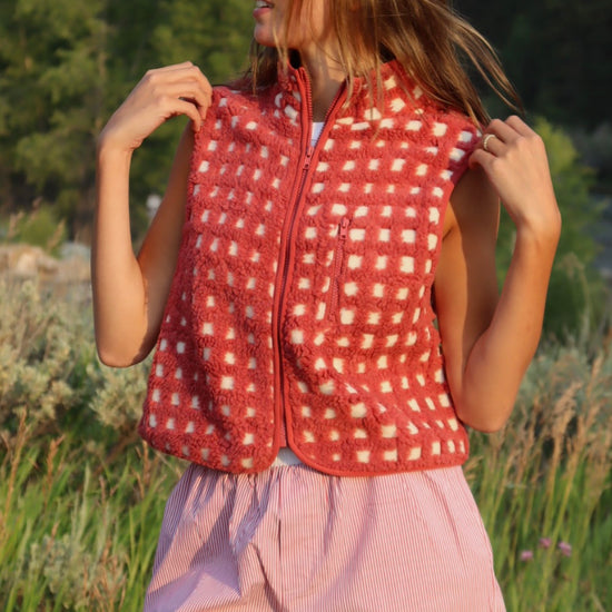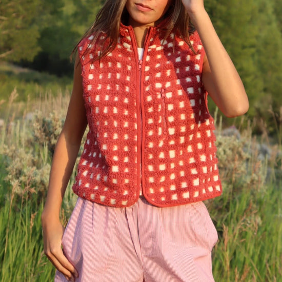Versatile, cool and classic. Our Montana Vests are made from a soft and structured knit fabric with a sherpa fleece outer design. The slightly cropped, boxy fit makes it great for layering. Features a full zip closure and front zip pocket for your essentials.